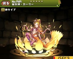 パズドラの秘女神・カーリーのステータス簡易評価と スキル上げ対象モンスター、入手方法まとめです。
