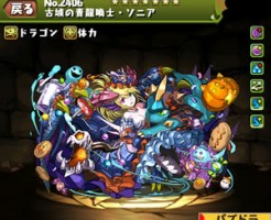 パズドラの古城の青龍喚士・ソニア(ハロウィンソニア、闇水ソニア)のステータス簡易評価とスキル上げ対象モンスター、入手方法まとめです。