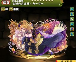 パズドラの古城の女主神・カーリー(ハロウィンカーリー)のステータス簡易評価とスキル上げ対象モンスター、入手方法まとめです。