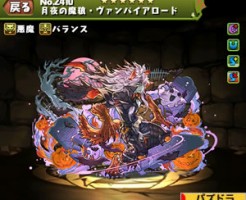 パズドラの月夜の魔狼・ヴァンパイアロード(ハロウィン)のステータス簡易評価とスキル上げ対象モンスター、入手方法まとめです。