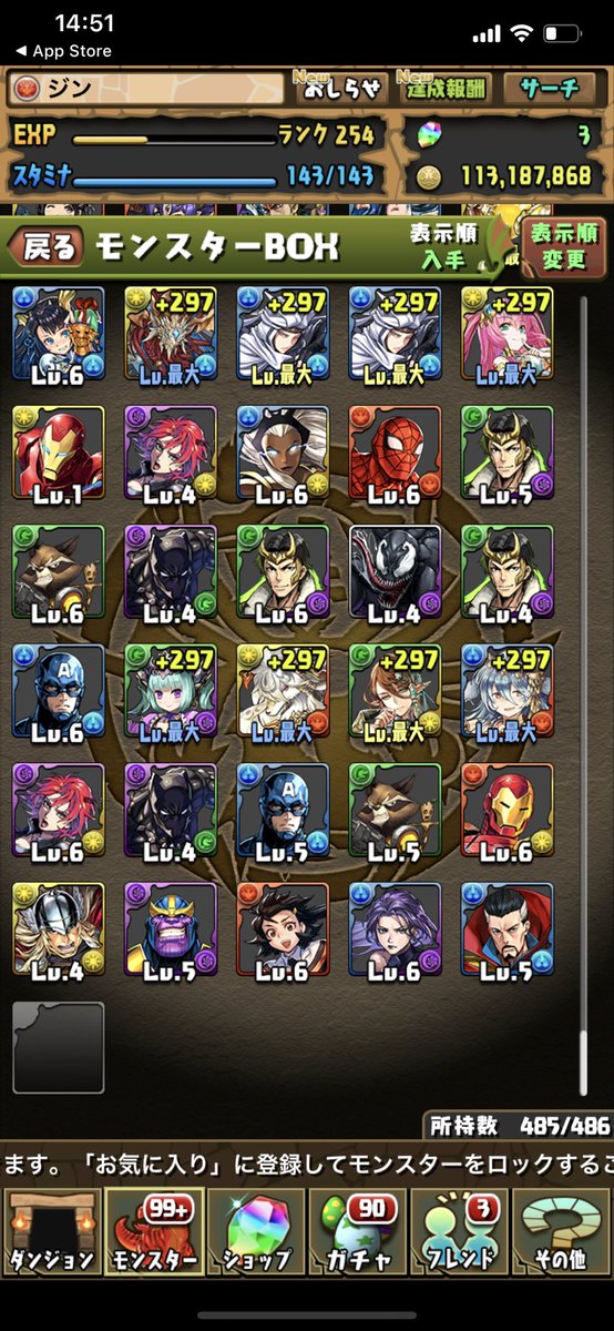 30連でキャプテンアメリカとアイアンマン、デッドプール、サイロック、ブラックパンサー以外全部出た!!ただただ運がおかしい!!