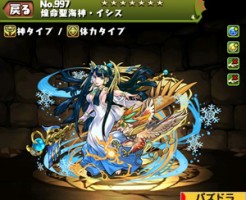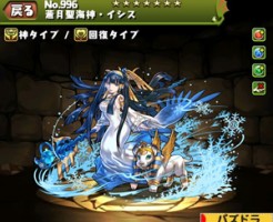 パズドラの聖海神・イシスの ステータス簡易評価とスキル上げ対象モンスター、入手方法まとめです。