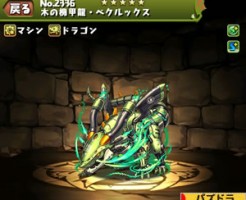 パズドラの木の機甲龍・べクルックスの ステータス簡易評価とスキル上げ対象モンスター、入手方法まとめです。