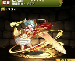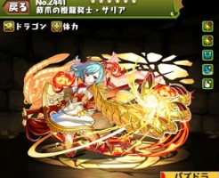 パズドラの橙龍契士・サリアの ステータス簡易評価とスキル上げ対象モンスター、入手方法まとめです。