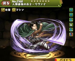 パズドラの人類最強の兵士・リヴァイのステータス簡易評価とスキル上げ対象モンスター、入手方法まとめです。