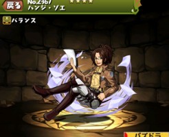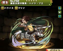 パズドラの調査兵団分隊長・ハンジ・ゾエのステータス簡易評価とスキル上げ対象モンスター、入手方法まとめです。