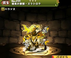 パズドラの煌角の番獣・ズラトロクの ステータス簡易評価とスキル上げ対象モンスター、入手方法まとめです。