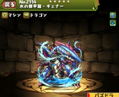 パズドラの水の機甲龍・ギェナーの ステータス簡易評価とスキル上げ対象モンスター、入手方法まとめです。