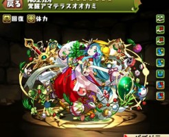 パズドラの焔天舞神・アマテラスオオカミの ステータス簡易評価とスキル上げ対象モンスター、入手方法まとめです。