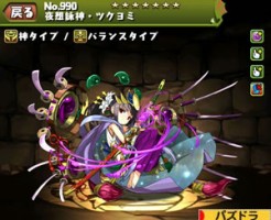 パズドラの夜刻武神・ツクヨミの ステータス簡易評価とスキル上げ対象モンスター、入手方法まとめです。