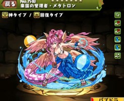 パズドラの夏休みガチャで入手できる楽園の管理者・メタトロン(水メタトロン)の使い道・評価・当たりキャラなのかを考察してみました。 レア度7の超激レア枠\(^o^)/ ※究極進化後の水メタトロンの評価は以下をご覧下さい。 ・・・