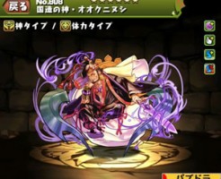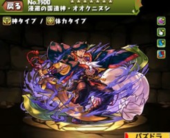 パズドラのオオクニヌシの ステータス簡易評価とスキル上げ対象モンスター、入手方法まとめです。