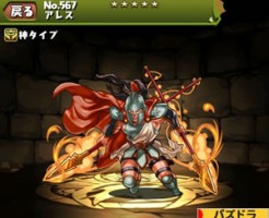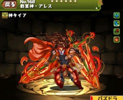 パズドラの戦軍神・アレスの ステータス簡易評価とスキル上げ対象モンスター、入手方法まとめです。 No.568 戦軍神・アレス 読み:せんぐんしん・あれす 神タイプ 属性:火 コスト:25 ★6 最大LV:99 必要経験・・・