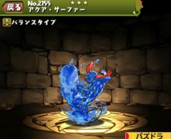 パズドラのアクア・サーファーの ステータス簡易評価とスキル上げ対象モンスター、入手方法まとめです。 No.2155 アクア・サーファー 読み:あくあ・さーふぁ バランスタイプ 属性:水 コスト:5 ★3 最大LV:25・・・