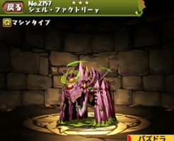 パズドラのシェル・ファクトリーγの ステータス簡易評価とスキル上げ対象モンスター、入手方法まとめです。 No.2157 シェル・ファクトリーγ 読み:しぇる・ふぁくとりーがんま マシンタイプ 属性:木 コスト:5 ★3・・・