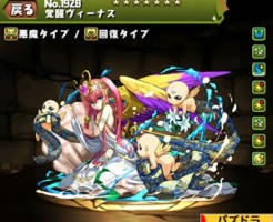 パズドラの覚醒ヴィーナスのステータス簡易評価とスキル上げ対象モンスター、入手方法まとめです。