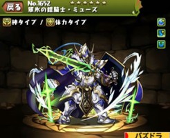 パズドラの翠氷の鎧騎士・ミューズのステータス簡易評価とスキル上げ対象モンスター、入手方法まとめです。