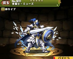 パズドラの青騎士・ミューズのステータス簡易評価とスキル上げ対象モンスター、入手方法まとめです。
