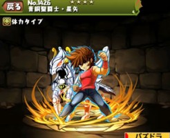 パズドラの青銅聖闘士・天馬星座の星矢のステータス簡易評価とスキル上げ対象モンスター、入手方法まとめです。