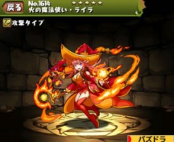 パズドラの火の魔法使い・ライラのステータス簡易評価とスキル上げ対象モンスター、入手方法まとめです。