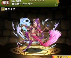 威女神・カーリーのステータス簡易評価と スキル上げ対象モンスター、入手方法まとめです。