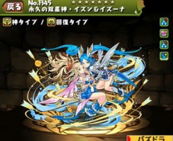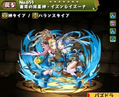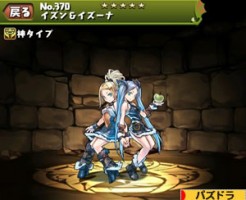 イズン&イズーナのステータス簡易評価と スキル上げ対象モンスター、入手方法まとめです。 No.370 イズン&イズーナ 読み:いずん&いずーな バランスタイプ 属性:水 コスト:20 ★5 最大LV:50 必要経験値:7・・・
