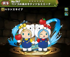 リンゴの泉のキティン&ミミーナのステータス簡易評価と スキル上げ対象モンスター、入手方法まとめです。 No.1147 リンゴの泉のキティン&ミミーナ 読み:きてぃん&みみーな バランスタイプ 属性:水 / 水 コスト:・・・
