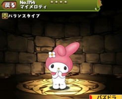 マイメロディのステータス簡易評価と スキル上げ対象モンスター、入手方法まとめです。