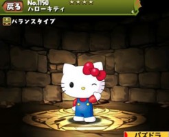 ハローキティのステータス簡易評価と スキル上げ対象モンスター、入手方法まとめです。