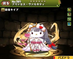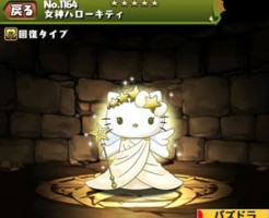 女神ハローキティ★のステータス簡易評価と スキル上げ対象モンスター、入手方法まとめです。