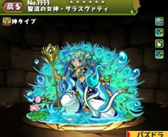 聖流の女神・サラスヴァティのステータス簡易評価と スキル上げ対象モンスター、入手方法まとめです。
