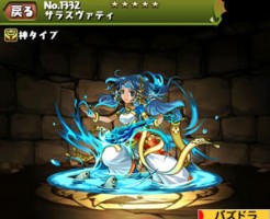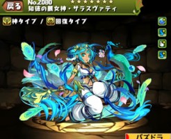 知徳の麗女神・サラスヴァティのステータス簡易評価と スキル上げ対象モンスター、入手方法まとめです。