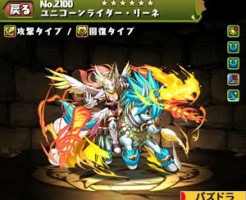 ユニコーンライダー・リーネのステータス簡易評価と スキル上げ対象モンスター、入手方法まとめです。