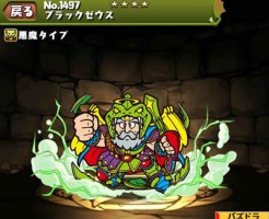 ブラックゼウスのステータス簡易評価と スキル上げ対象モンスター、入手方法まとめです。