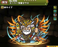 パズドラのスーパー覚醒ゼウスのステータス簡易評価と スキル上げ対象モンスター、入手方法まとめです。
