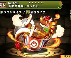 パズドラの赤の丼龍ダンジョンにて入手可能な 火熱の丼龍・ギュンドのステータス簡易評価と スキル上げ対象モンスター、入手方法まとめです。